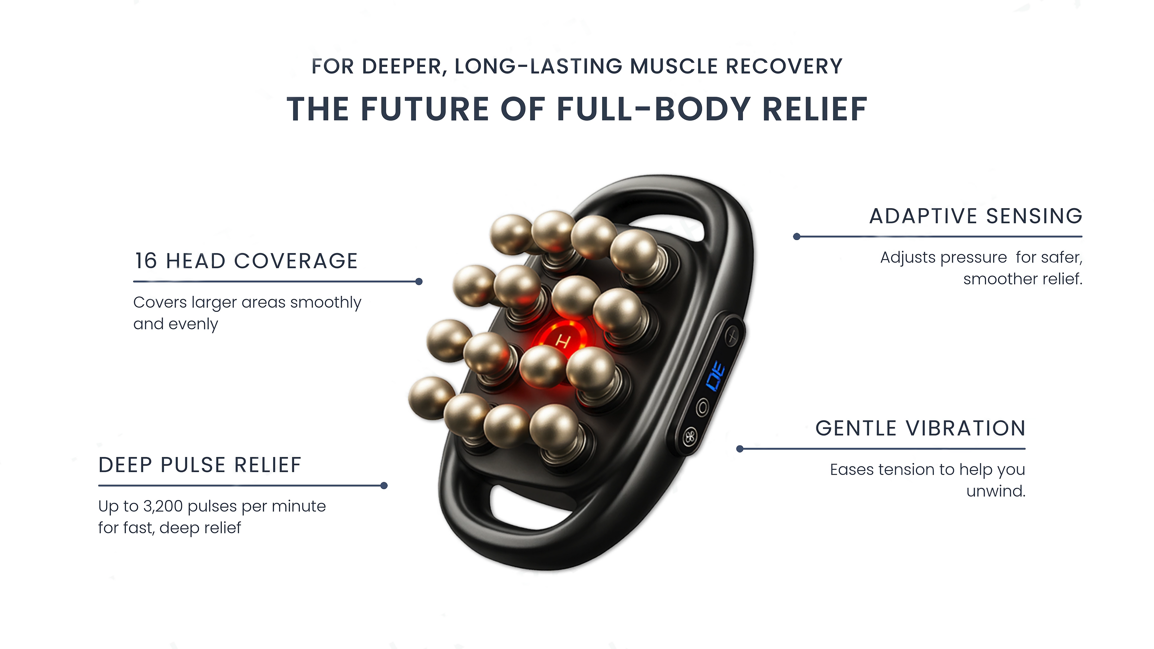 1️⃣ Smart Pulse Engine 2.0 – Delivers up to 3,200 percussions per minute with intelligent speed control for perfectly balanced pressure.